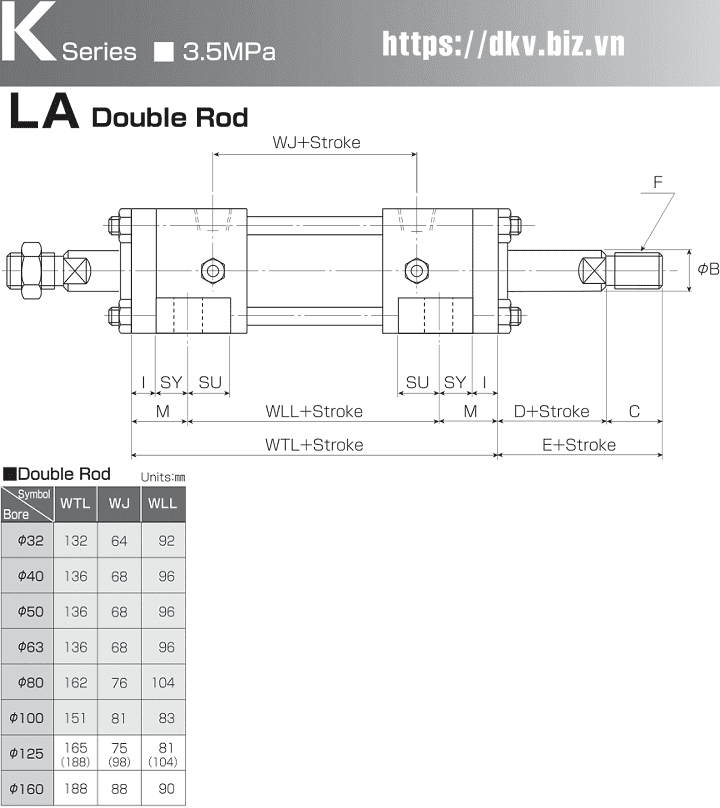XY LANH THỦY LỰC HORIUCHI | HORIUCHI HYDRAULIC CYLINDER | K SERIES | LA DOUBLE ROD | 35 bar