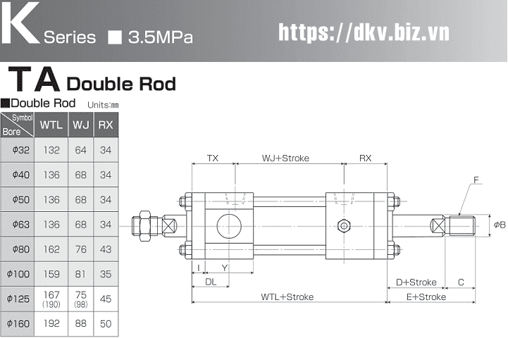 XY LANH THỦY LỰC HORIUCHI | HORIUCHI HYDRAULIC CYLINDER | K SERIES | TA DOUBLE ROD | 35 bar