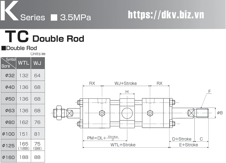 XY LANH THỦY LỰC HORIUCHI | HORIUCHI HYDRAULIC CYLINDER | K SERIES | TC DOUBLE ROD | 35 bar