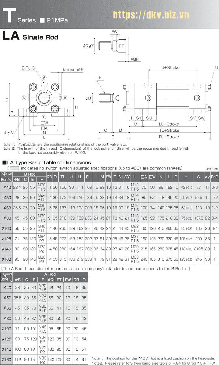 - Xy lanh thủy lực Horiuchi dòng T (kiểu LA Single Rod) có đường kính xy lanh: Ø40 ÷ Ø 250 mm, với hành trình max: 1.500 - 2.000 mm.